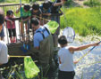 内容:ビオトープ池の生き物採取(40分)→採取した生き物について説明(15分)→ペットボトルでミニ・ビオトープ作り(20分)→自然生態、環境問題について説明(15分)